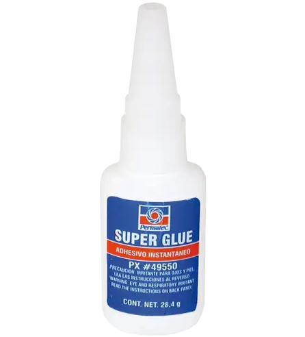 Especialmente formulado para una uni?n m?s r?pida y duradera. Trabajos en materiales no porosos, incluyendo metal, pl?sticos, caucho, vinilo, papel, madera, textiles y juntas de corcho. La uni?n permanente y transparente llena los huecos hasta .004 ” Se aplica f?cilmente, exactamente donde lo necesitas. Aplicaciones sugeridas: molduras automotrices, logotipos, perillas, logotipos de cambio de marchas, reparaciones menores en interiores